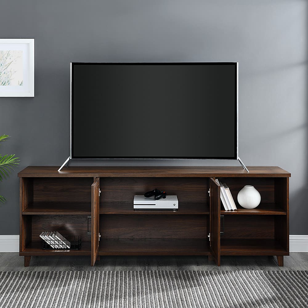 Walker Edison - Detailed-Door TV Stand for Most TVs up to 80” - Dark walnut