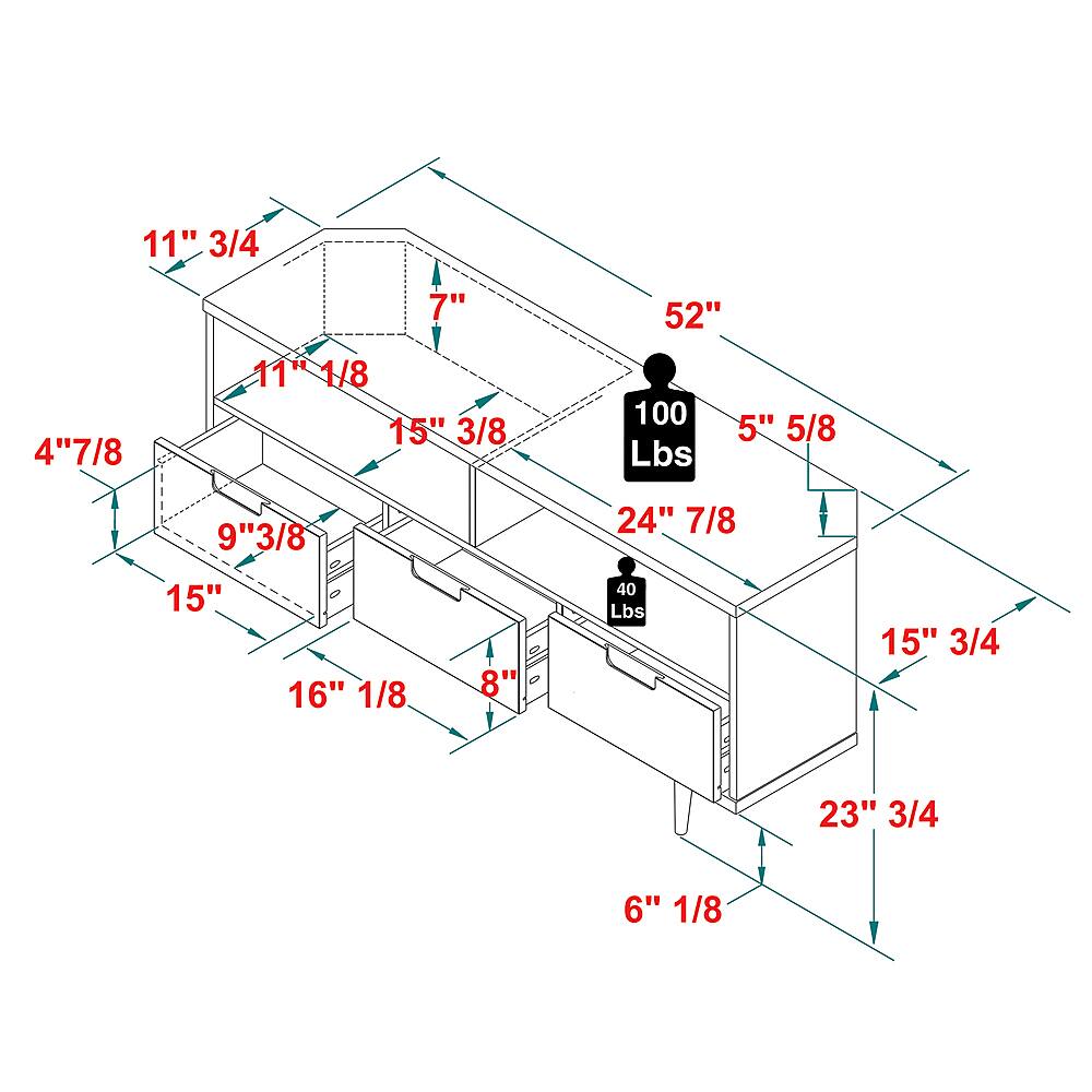 Accentuate your great taste for home decor with this bohemian-inspired TV stand. The tapered wood legs and natural grain finish provide a Mid-century modern feel to your living room or den. Tuck your vast movie collection within the three drawers with attractive cutout handles to get the organized feel you’ve been searching for. Place media components in the two open cubbies for the ultimate home theater experience.