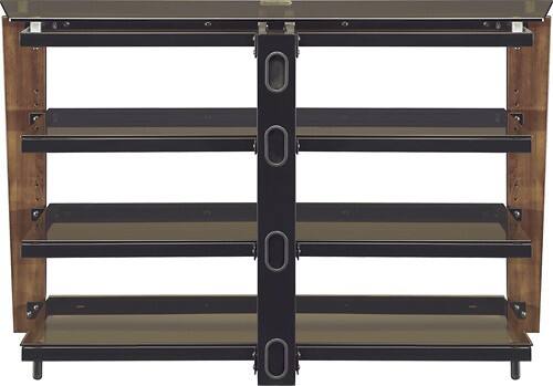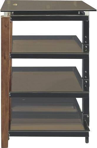 8MM gray smoke tempered glass top shelf, 5MM gray smoke tempered glass middle & bottom shelf - 2 middle shelves are adjustable.