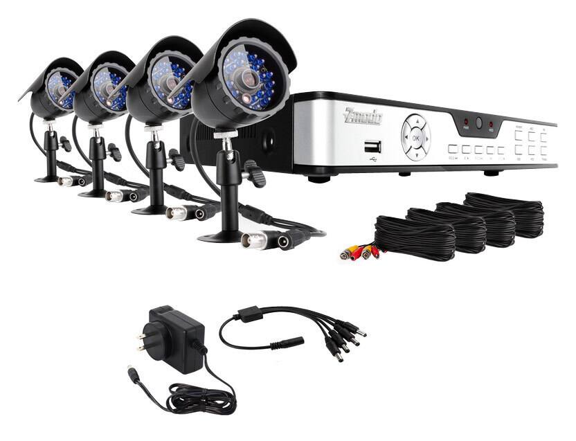 4 outdoor IR security cameras (ZMD-CNR-BBB23NM), 4-channel security DVR (ZMD-DD-SBN4)